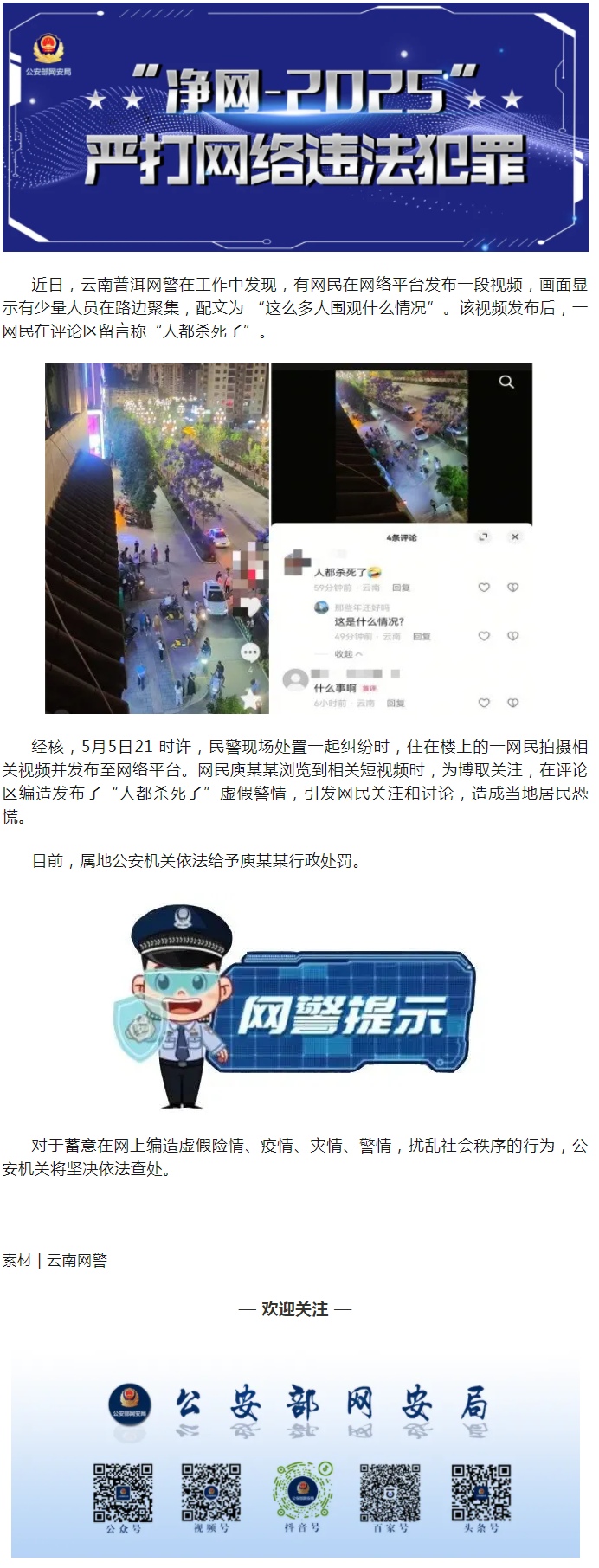 肆意造谣 “杀人”虚假警情,网警依法查处